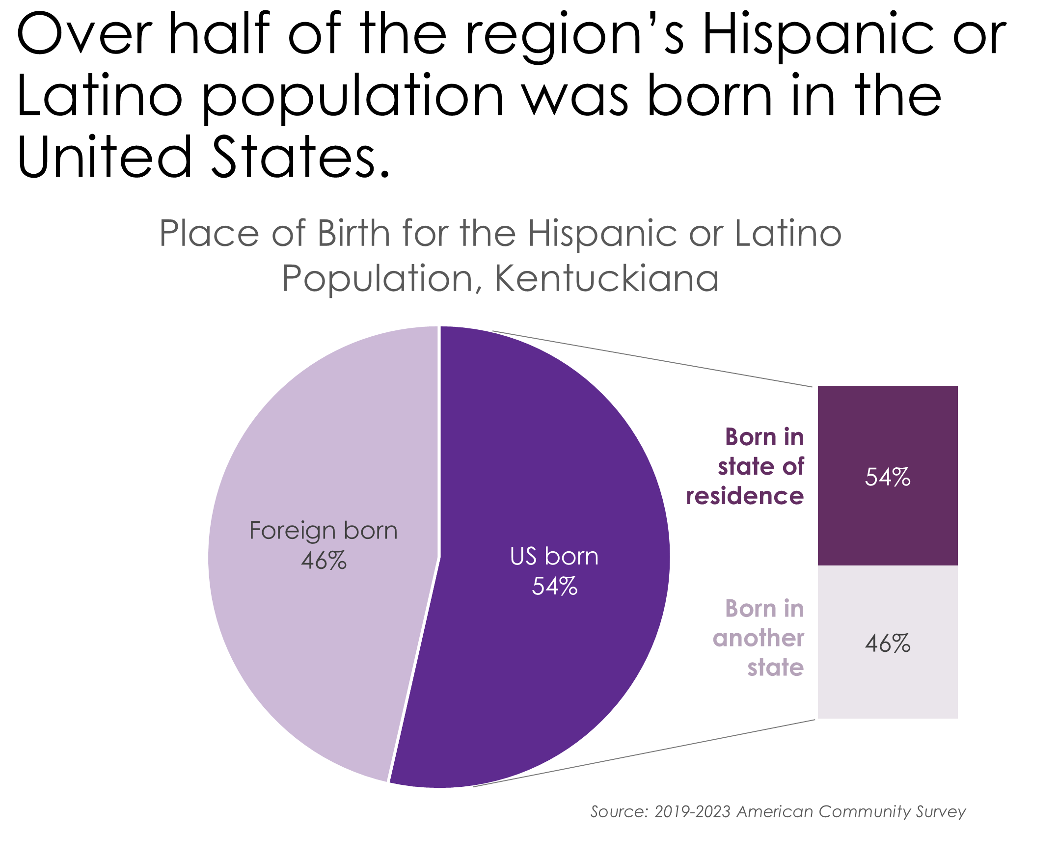 Over half of the region’s Hispanic or Latino population was born in the United States, and among those born in the States, more than half were born in the state they currently live in.