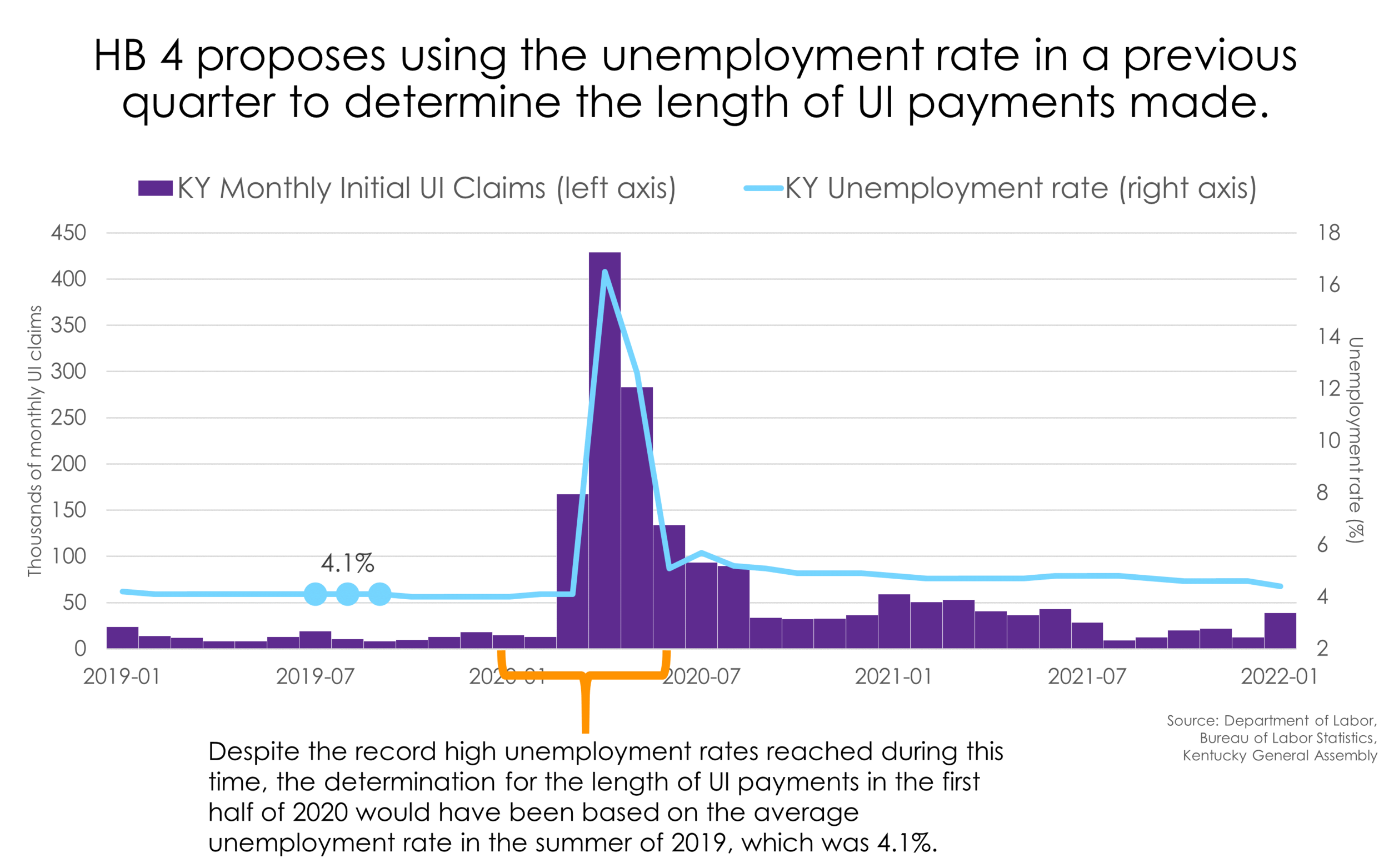 There are many reasons for Kentucky’s low workforce participation rate. Therefore, it is likely to take a number of different strategies and policies to address. Recently, Kentucky legislators made changes to the unemployment insurance (UI) benefit program to address the low labor force participation in the state. On Monday, the Kentucky General Assembly overrode Governor Beshear’s veto of House Bill 4, which will limit the number of weeks individuals can receive UI benefits and increase required job search efforts.